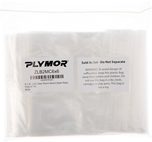 Plymor 6" x 6", 2 Mil (Pack of 100) Zipper Reclosable Plastic Bags
