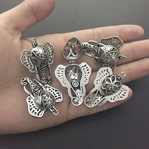 5pcs Magnetic Clasp Elephant Locket Aromatherapy Essential Oil Diffuser Pearl Cage Pendant For Necklace Making