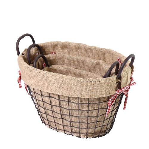 -. Binding : Kitchen -. Brand : Asenseusa -. Color : flaxen -. EAN : 6958577025442 -. Feature : Multi-purpose basket for laundry, storage, decor and more / Materials- Iron frame with cotton-polyester "burlap" lining / Dimensions: 16.7x9.8x13"/ 13.4x8.7x11.2"/ 11x6.3x9.4" / Bring home the some of the country style / Great decor for certain road sales, county fair, and other events -. IsAutographed : 0 -. Label : Asenseusa -. Manufacturer : Asenseusa -. Model : BTA004 -. MPN : BTA004 -. PackageQuantity : 1 -. PartNumber : BTA004 -. ProductGroup : Home -. ProductTypeName : HOME -. Publisher : Asenseusa -. Studio : Asenseusa -. Title : Asense OvalRustic Vintage-Inspired Iron Baskets Handles Burlap Lining Dark Brown Home Decor(SET OF 3)