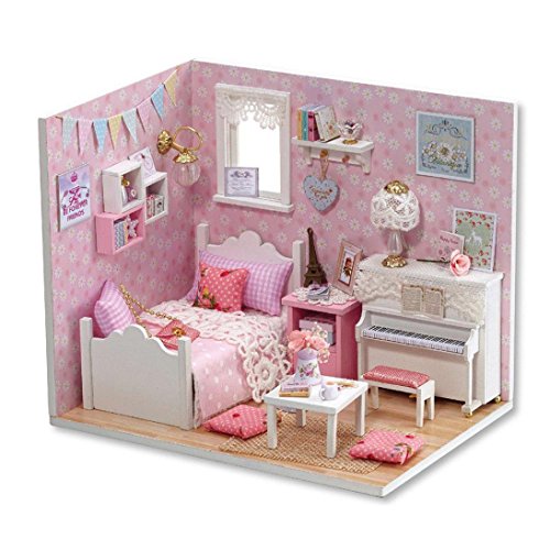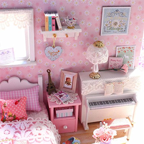 -. Title : Dollhouse, Sacow 3D Handmade Miniature Princess Dollhouse DIY Wooden Mini House with Furniture Kit Light Kids Girls Gift
