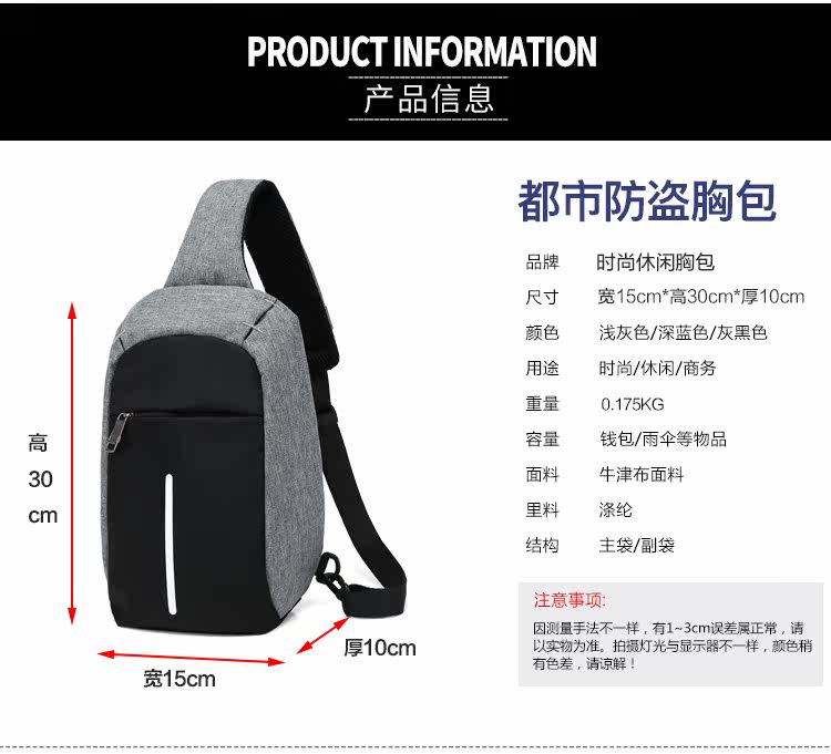 Backpack has left and right adjustment buckles, can adjust the direction according as your habit.