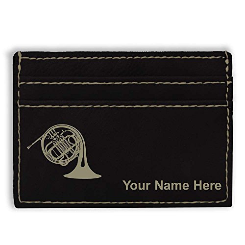 -. Binding : Apparel -. Brand : SkunkWerkz -. ClothingSize : Medium -. Color : Black -. Department : mens -. EAN : 0655222571175 -. Feature : The Money Clip Wallet is laser engraved with the image that you see in the photo. / Your name or personalized message will be engraved on the wallet for free. / Synthetic leather construction. Includes space for 3 credit cards. / You may have one line of engraved text - 20 characters maximum. / Click the "Customize Now" button to begin customizing your wallet. -. ProductGroup : Apparel -. ProductTypeName : ACCESSORY -. Size : Medium -. Title : Money Clip Wallet, French Horn, Personalized Engraving Included (Black) -. UPC : 655222571175