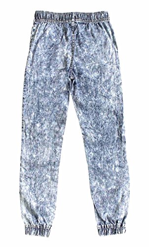 -. Feature : Size: Please read Bienzoe Size Chart in product description.(Not Amazon size) / Material Composition: 100% Cotton / Features: Elastic in waist and hem, Removable drawstring on waist, Front side pockets,Lightweight Denim Jeans,Jogging Pant / More details: Quality and soft denim fabric, Fashionable snow washing effect / Washing and Ironing: Cold machine wash with similar colors, No soak or bleach, No tumble dry or dry clean, Iron on reverse side only