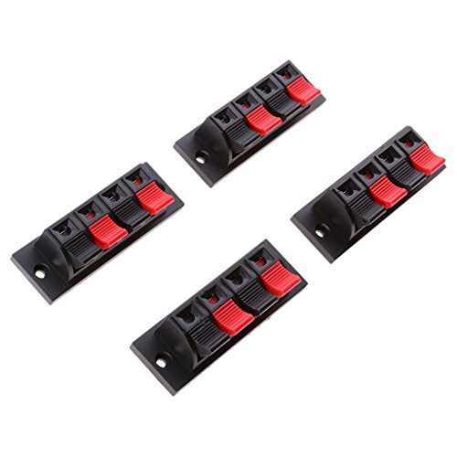 Description: - -4 Pins Terminal, 2 Red, 2 Black, 4 Positions. - -Spring Load Design, Push Type, 4-Way Stereo Speaker Plate Push Release Connector Terminal - -Product Size: Approx. 70*24*30mm/ 2.75x 0.94x 1.18inch - -Material: Plastic, Metal -Package included: 4 pieces Speaker Terminals