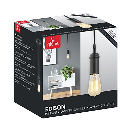 ✔ Globe Electric's simple matte black 1 Light Vintage Edison Mini Pendant with a designer black cloth cord is a great spin on a classic design. The exposed socket creates a modern industrial look. Pair it with a vintage inspired bulb for a unique design. Simple and inviting this piece is great for any space in your home. Hang them alone or together to create a variety of different long lasting looks. Includes all mounting hardware for quick and easy installation and requires three 60W E26 vintage look light bulb (sold separately). About Globe Electric - since 1932 - our commitment is to our consumers, partners, associates, and our product. Every day we strive to develop and sustain the Creative energy that has kept us going for more than 80 years. Globe is a leader in high quality and innovative products; with the pace of technological change increasing globe continues to invest in research and development. Specializing in the design and manufacture of light bulbs, luminaires, and electrical products, globe has over 20 production facilities all over the world. Globe works hand in hand with the leading retailers in the world to make sure the product presentation is flawless. The recipient of numerous achievement and design awards, Globe Electric Works tirelessly to design and manufacture products that deliver beautiful appeal, stellar performance, easy installation, and exceptional value. Globe Electric - the Creative energy Company ✔Feature