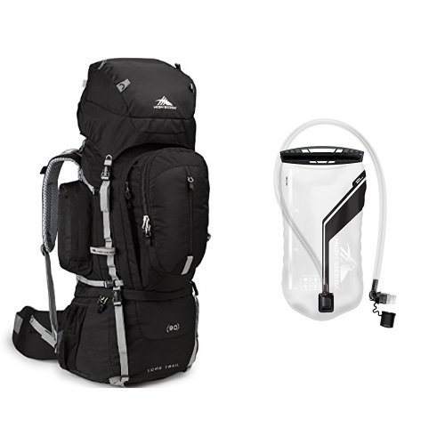 High Sierra Long Trail 90 Internal Frame Pack, Black/Black/Silver with 2L Reservoir
