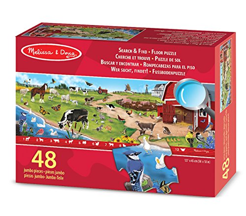This extra-large search-and-find puzzle offers an extra activity when completed! The 48 sturdy cardboard pieces assemble to reveal a lovely, sun-drenched farm scene filled with happy animals. A visual picture list is printed right on the puzzle, encouraging counting games and picture-search activities with no reading required. 0