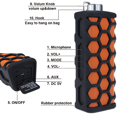 Waterproof & Shcokproof: Water-resistance and Exterior Rubber Shell prevent breaking from falling or impacting (included USB charging cable and 3.5mm Aux cable)