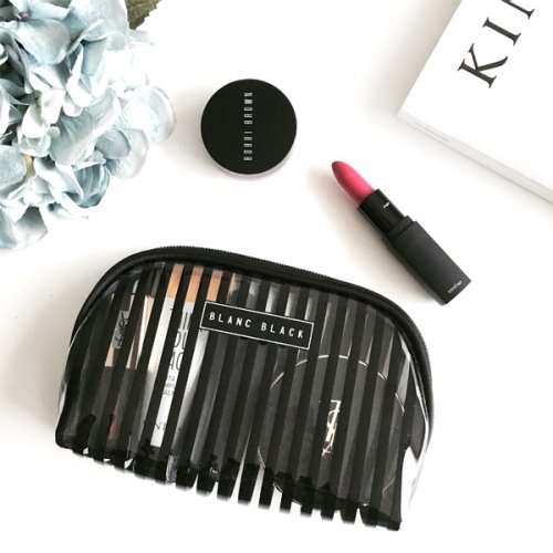 블랑블랙(BLANCBLACK) [블랑블랙] 스트라이프 반달 투명 파우치 S