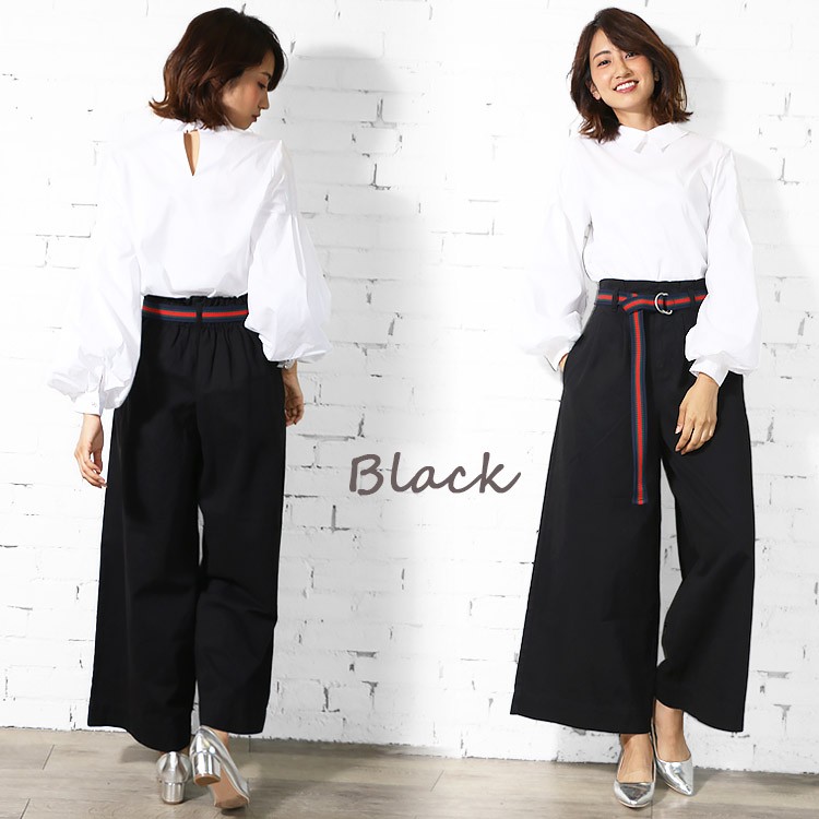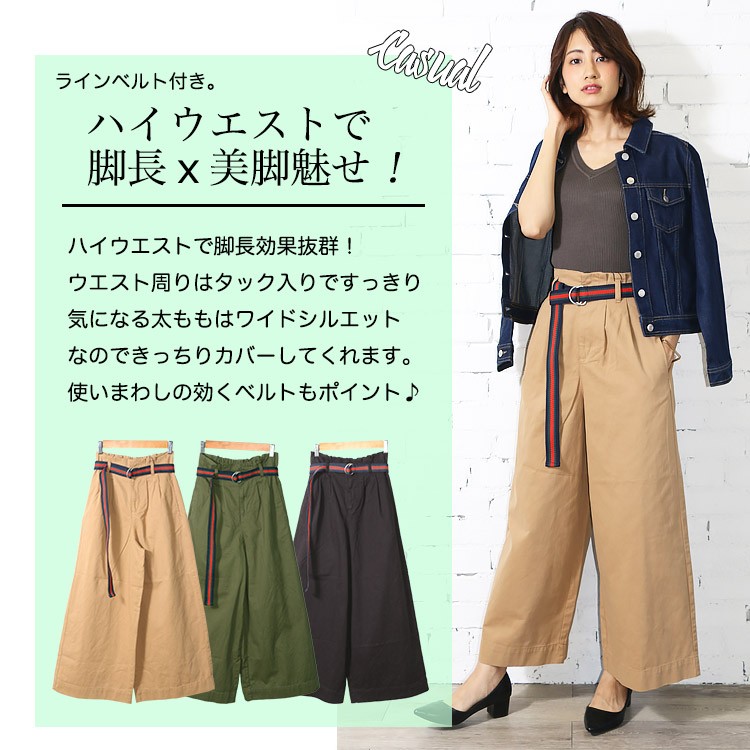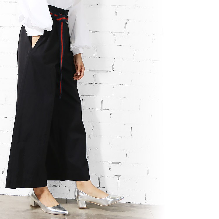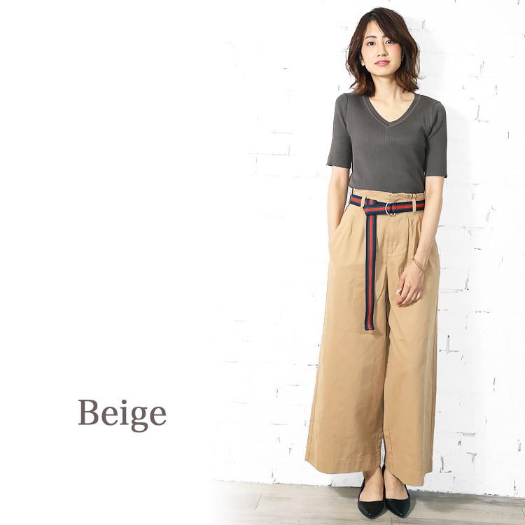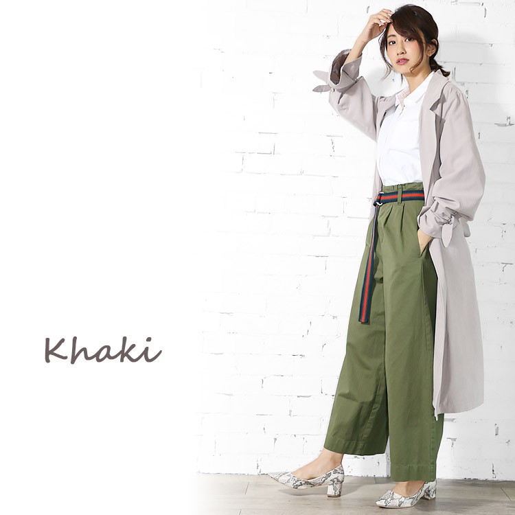 商品名:ラインベルト付きツイルワイドパンツ