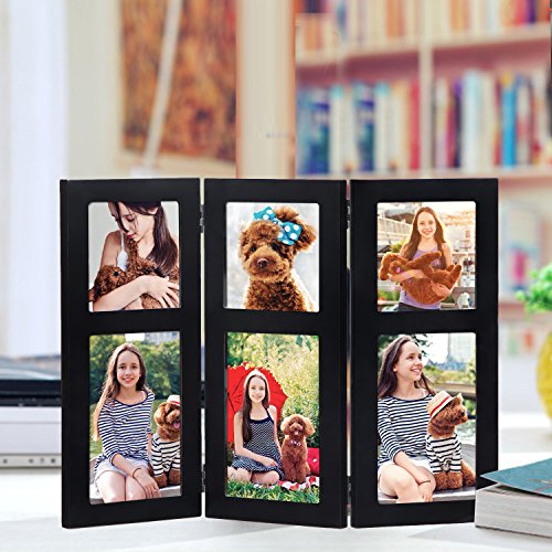 -. Title : Adeco 6-Opening Black Wood Hinged Folding Table Desk Top Photo Frame Collages, 4 by 6"