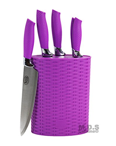Knife Set 6 Pc Modern Stainless Steel Purple Block Kitchen Chef Knife,Utility Knife,Paring Knife,Steak Knife,Bread Knife,Knives Cutlery New