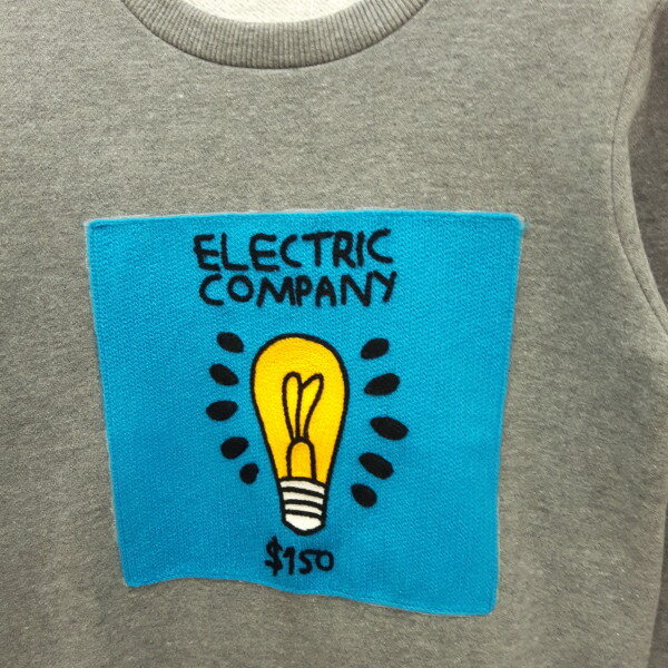 기모 안감 라운드넥 맨투맨 티셔츠입니다 니트 전구 패치로 포인트를 주었습니다