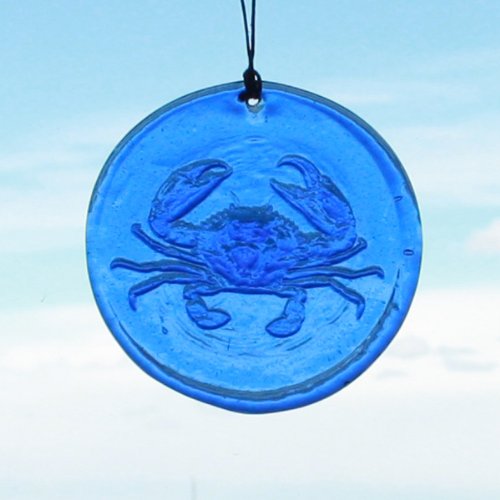 Crab Window Suncatcher in Cobalt - Hanging Glass - 4.25" in Diameter - Made From Recycled Glass