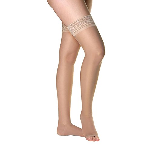 -. Binding : Health and Beauty -. Brand : Ames Walker -. Feature : No one will know that you are wearing compression stockings / Wear the sheerest 20-30 mmHg hosiery line on the market / Lace top band makes sure the stockings stay up, but still look pretty / A great value, the support you need but with the sheer elegance you want / Made in the U.S.A. -. Label : Ames Walker -. Manufacturer : Ames Walker -. MPN : 48-P -. PackageQuantity : 1 -. PartNumber : 48-P -. ProductGroup : Health and Beauty -. ProductTypeName : HEALTH_PERSONAL_CARE -. Publisher : Ames Walker -. Studio : Ames Walker -. Title : Ames Walker Women's AW Style 48 Sheer Support Open Toe Thigh High w/Lace Silicone Band - 20-30mmHg Nylon/Spandex 48-P
