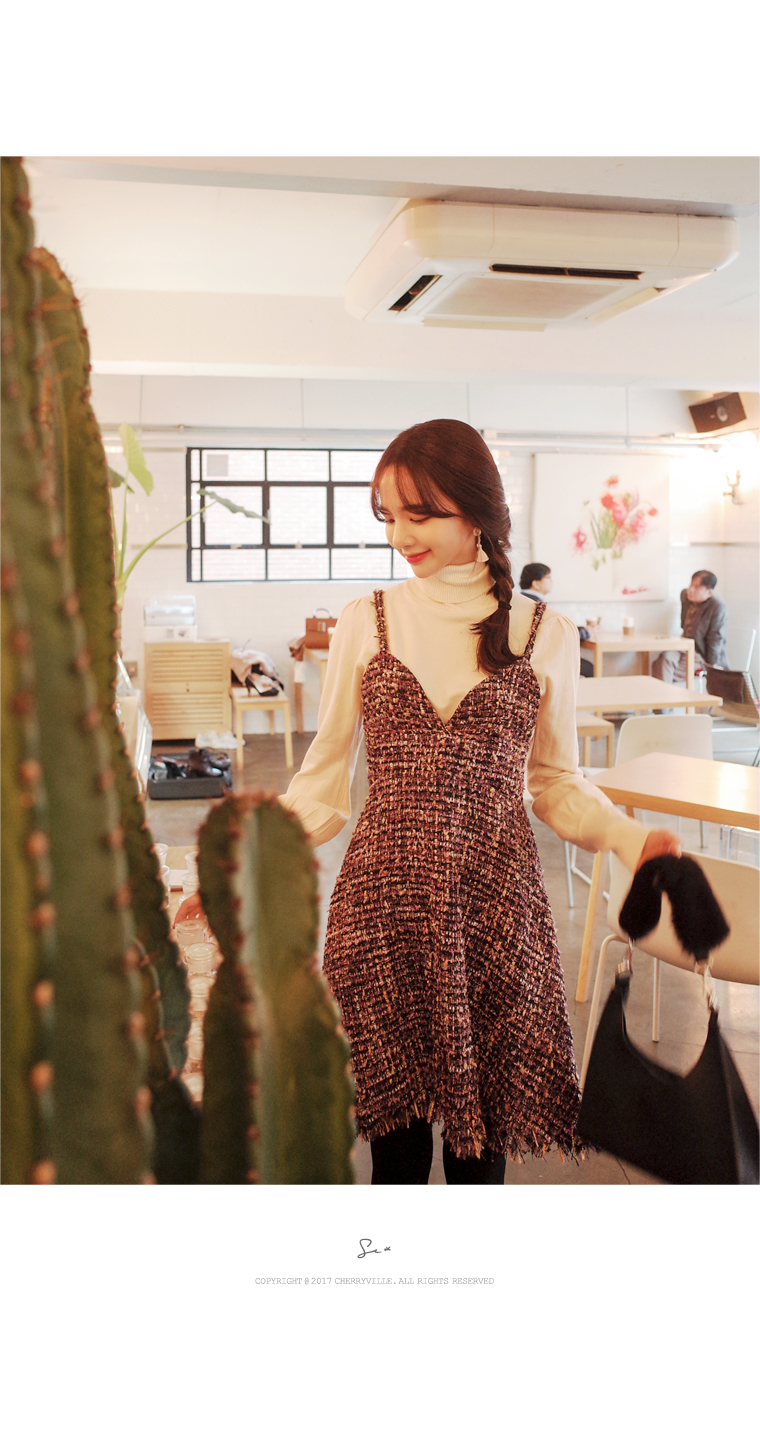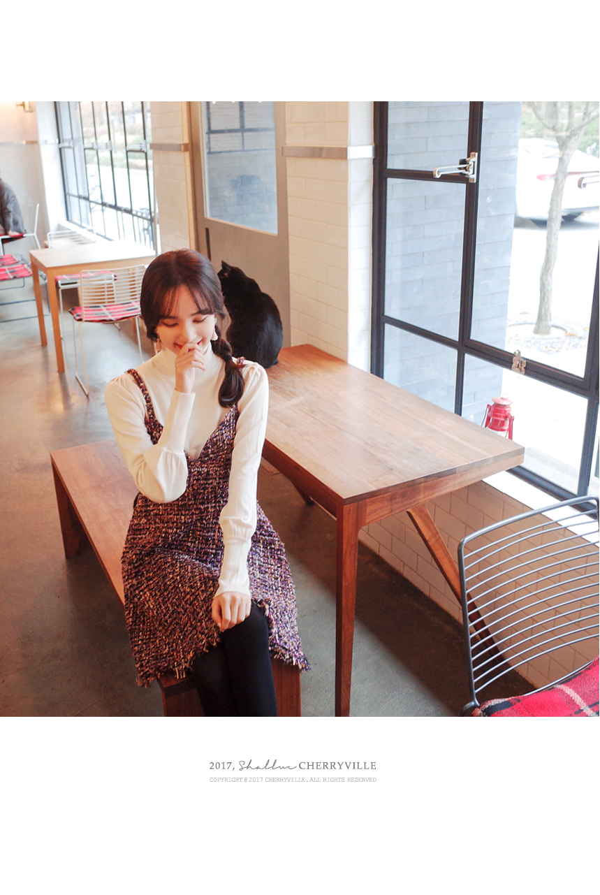 어깨부분이 셔링이 잡혀있어 벌룬느낌으로 여성스럽게 떨어지는 핏이에요