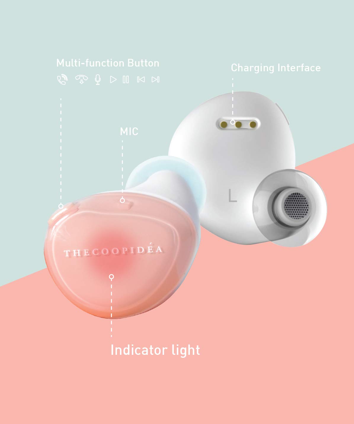 Bluetooth V4.1対応 連続再生時間:3.5時間 1300mAh充電ケース付属 便利なマルチファンクションボタン式
