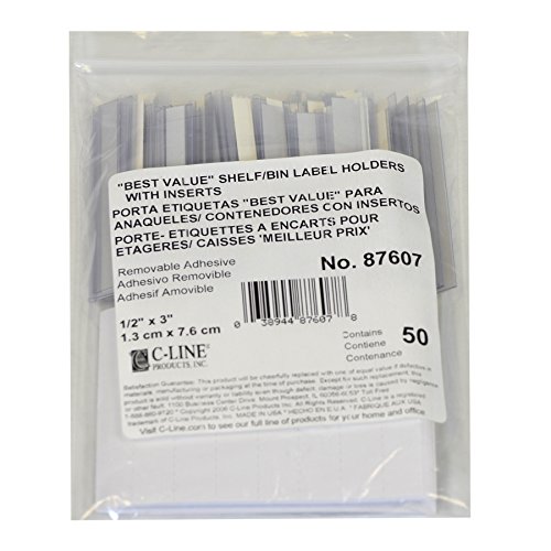 C-Line Best Value Peel and Stick Shelf/Bin Label Holders, Inserts Included, 1/2 x 3 Inches, 50 per Pack (87607)