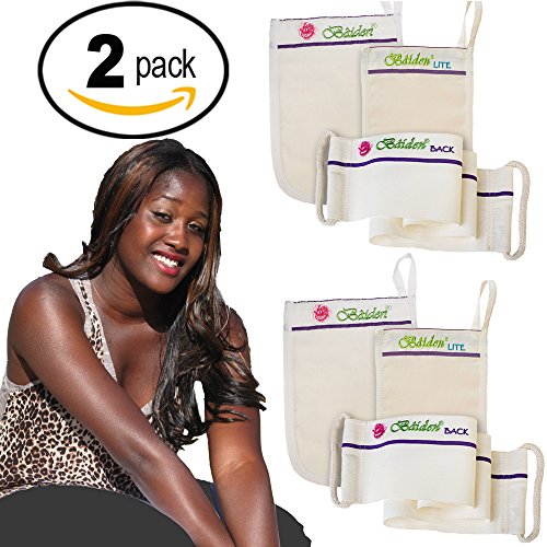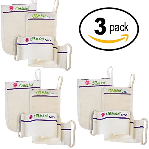 In response to our customer's requests, we now present a total skincare set containing the Original Baiden Mitten, Facial "Lite" mitten for gentler exfoliation and Back mitten because not all of us are contortionists :-) By purchasing a set you save money and effectively get one mitten for free.