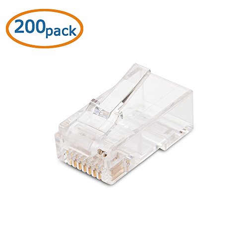 CONVENIENT 200-PACK CONTAINER protects and stores the RJ45 modular connectors until the next project; Screw-on lid with an integrated handle makes it easy to carry the RJ45 plugs along to the job site