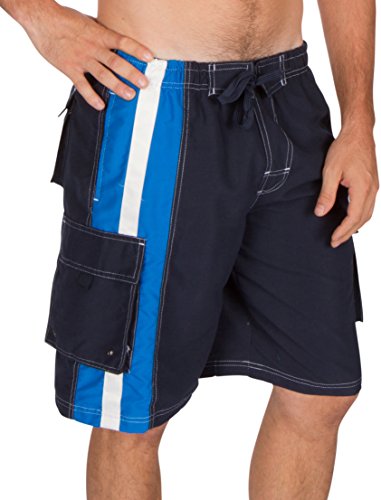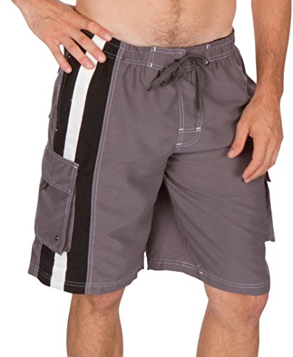 - Feature : Size Measurements: S = 32" Waist ( Inseam 10" ), M = 34" W ( Inseam 10" ), L = 36" W ( Inseam 10" ), XL= 38" W ( Inseam 11" ), XXL= 40"W ( Inseam 11" ) / Please refer to waist measurements above to select the correct size. / Features elastic waistband with full drawstring, two mesh front pockets, one rear pocket, mesh brief lining and two cargo pockets with velcro closure. / Versatile board shorts make a statement at the pool, the beach or just hanging out. Perfect for skateboarding, surfing, swimming or casual wear. / Machine wash cold. Line dry. Imported. | Material : 100% Polyester