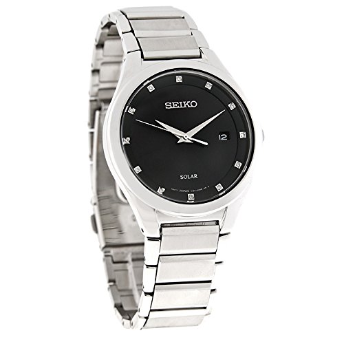 -. Title : Seiko Solar Mens Diamond Black Dial SS Bracelet Dress Watch SNE249