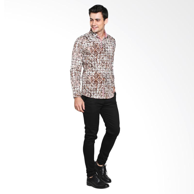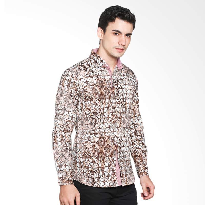 VM Slimfit Kemeja Batik Lengan Panjang Pria - Coklat Muda [B-174]