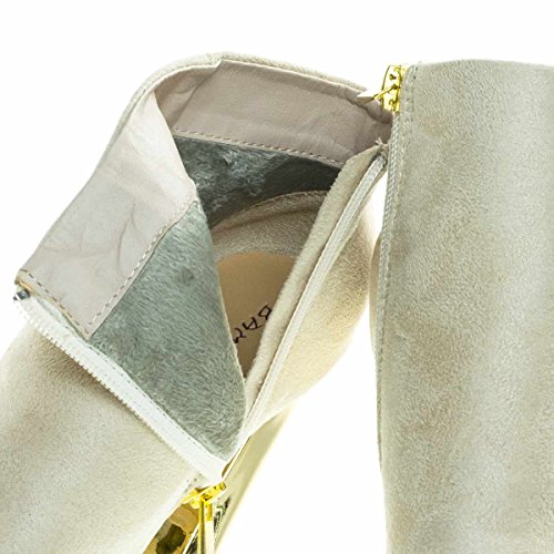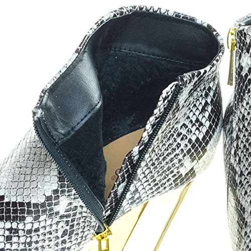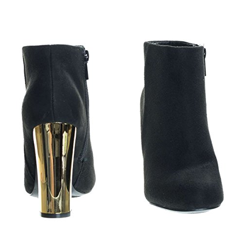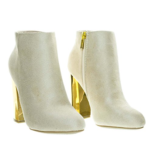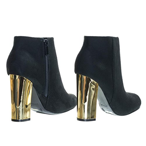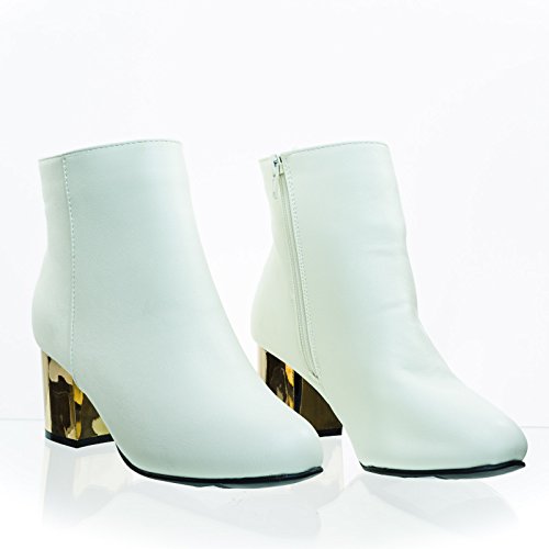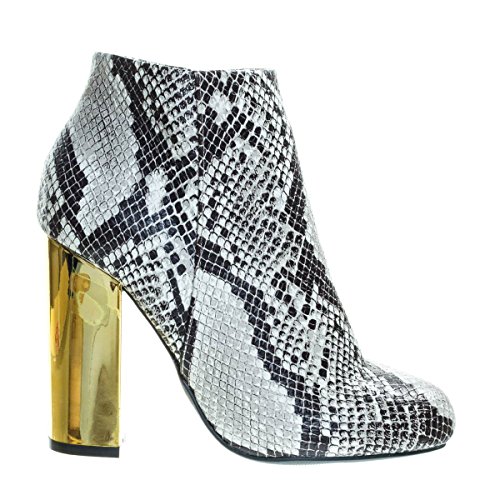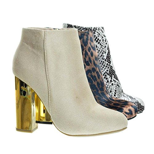 Binding : Apparel Product Description About This Shoes :Stunned in these glamorous ankle bootie featuring rounded toe, half rounded block heel in metal plate cover, inner zipper closure and thin layer of comfortable faux fur inner lining. Choose from solid color, leopard prints and snake embossed prints. Brand - Bamboo Colors Available: Ivory Faux Suede, Leopard Print, Black White Snake Occasion: Formal Shoe Type: Ankle Boots Shoe Style: Ankle Boots Inner Lining: synthetic Heel Height In Inches - 4 Heel Style - Block Toe Style - round-toe Platform Height In Inches - 0.25 Shaft Height In Inches - 3.25 Circumference Opening - n/a Strap Type - strapless Sole - manmade All Man Made Material unless otherwise stated. Computer/Phone/Table monitors might show color differently because of its quality or calibration, we suggest you look at the photo in at least 3 monitors if you need exact color match of your shoes. 0