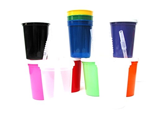-. Title : Talisman, Small Plastic Drinking Glasses, Lids and Straws, 12 Ounce, 12 Pack, Mix Colors