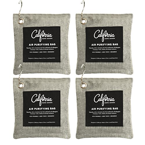 4 Pack with Hooks - 200g Activated Bamboo Deodorizer Natural, Air Purifying Bags, Dehumidifier, Odor Absorber, Odor Neutralizer for Home, Shoes, Car, Charcoal Colored, by California Home Goods