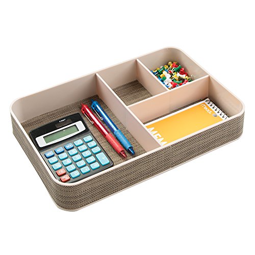 mDesign Office Supplies Desk Organizer Tray for Calculators, Notepads, Pens - Pack of 2, 4 Sections, Pearl Champagne