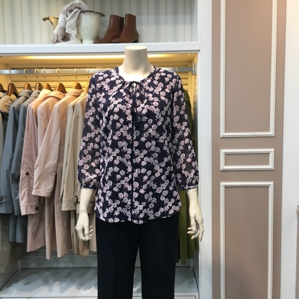 꽃잎 프린팅 쉬폰 블라우스입니다