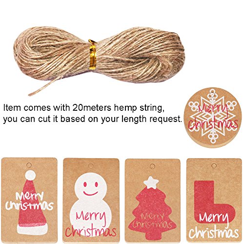 Studio : SOOKOO Publisher : SOOKOO Binding : Office Product Product Description Description: Material: Kraft Paper Size: Rectangular tag approximately - 3" × 2" (7.5cm × 5cm), Circular tag approximately - 2" (5cm)in diameter These tags can be widely used as gift tags for Chirstmas gifts, Cookies, Candy, Biscuit, etc. Perfect for dressing up your wrapped presents These set comes with 20 meters twine string, which is long enough and you can cut it by yourself to the length you need 5 Designs will need your different use, 20pcs for each design, 100pcs in total Package Include: 100pcs Gift Tags with 20 Meter Twine String 0