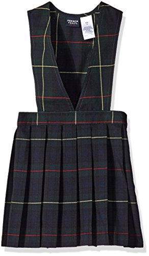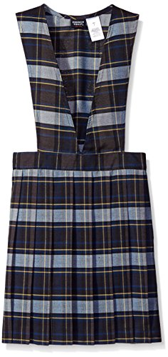 Girl's plaid V-neck jumper with all around pleated. Pleats are permanent and jumper has a side zipper with button closure.