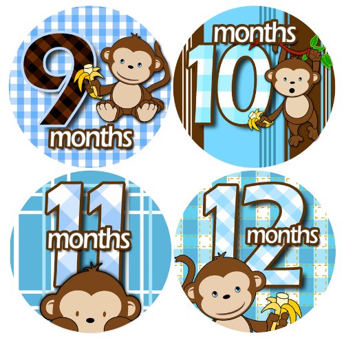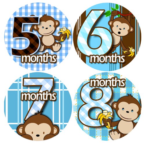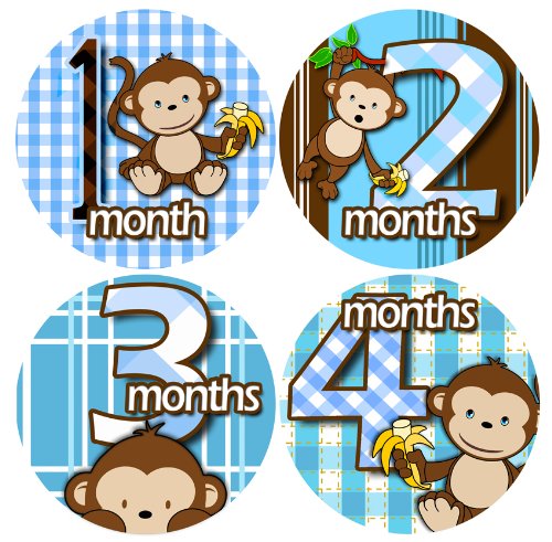 -. Title : BLUE BANANA MONKEYS Baby Month Onesie Stickers Baby Shower Gift Photo Shower Stickers, baby boy monkeys by OnesieStickers