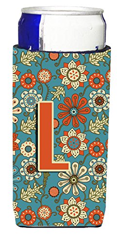 Letter L Flowers Retro Blue Ultra Beverage Insulators for slim cans CJ2012-LMUK