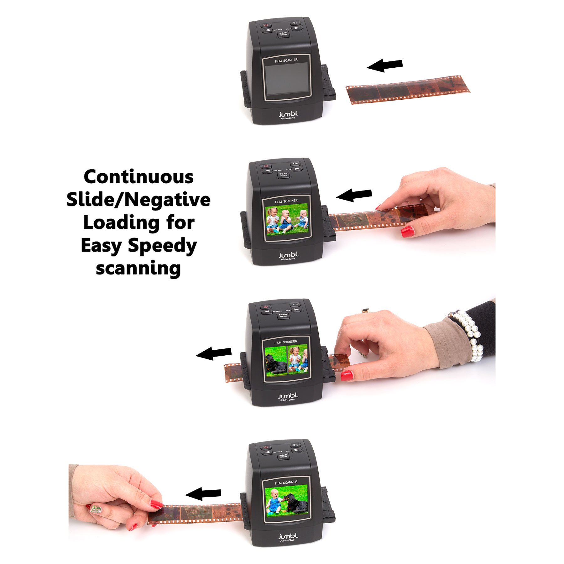With built-in 14 Megapixel sensor (up to 22 Megapixels), color / monochrome negatives and slide-equipped slides etc all scan easily and vividly.