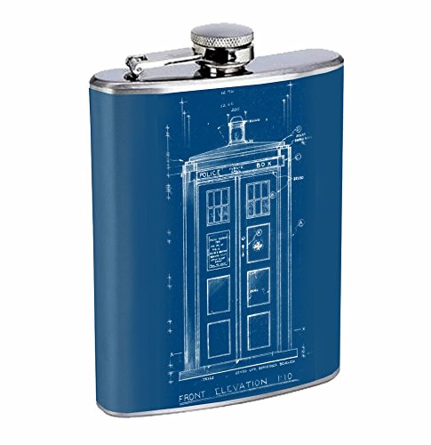 -. Title : Tardis Hip Flask Stainless Steel 8 Oz Silver Drinking Whiskey Spirits R1