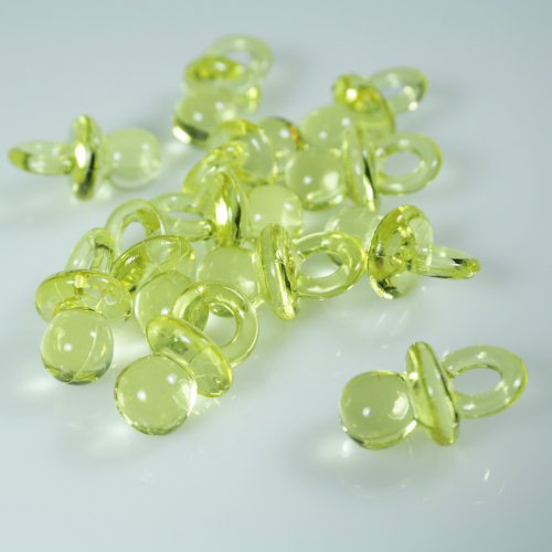 Small Yellow Acrylic Baby Pacifiers to Decorate Baby Shower Favors - 144 Pieces - Size: 1/2" X 3/4"