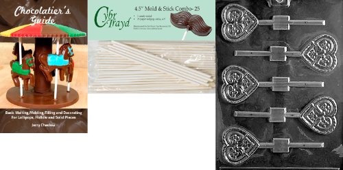 Cybrtrayd 'Love Birds Heart Lolly' Valentine Chocolate Candy Mold with 25 4.5-Inch Lollipop Sticks and Chocolatier's Guide