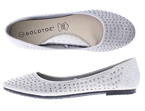 -. Binding : Apparel -. Brand : Gold Toe -. Department : womens -. Feature : Rhinestone embellished slip on comfort ballerina flat for women / The Gold Toe Brianna women's metallic shimmer ballet flat with jewel studded upper is available in gold and silver / Comfortable walking flats feature padded insoles with arch support and durable rubber outsoles for cushioned foot relief and reliable traction / Round almond toe / This womens ballet shoe is available in whole sizes only - please see fit guide in product description for shoe size recommendation -. Model : Brianna -. ProductGroup : Shoes -. ProductTypeName : SHOES -. Title : Gold Toe Women's Metallic Sparkle Ballerina Flat Slip On Rhinestone Jeweled Ballet Flats