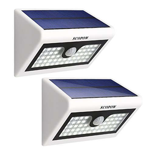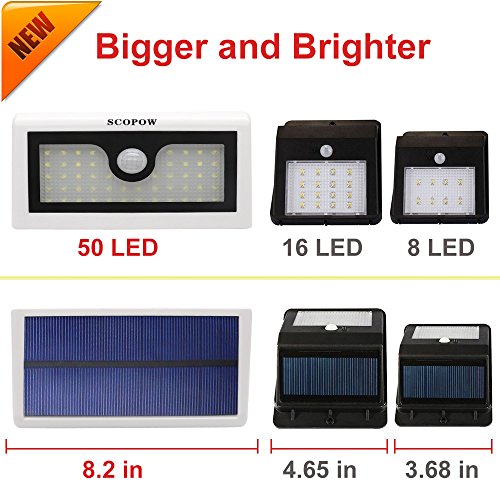 Solar Motion Sensor Security Light, SCOPOW 50 LED Weatherproof Solar Powered Wall Light Wireless Motion Sensor Security Light With Battery Operated and 3 Mode for Outdoor Garden Patio Path Pool (2)