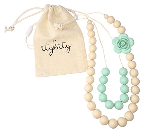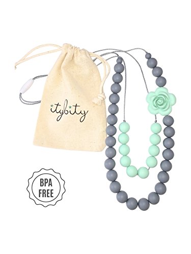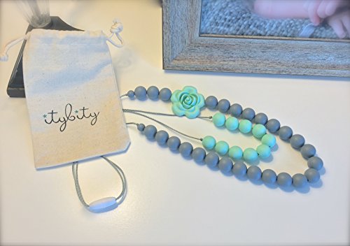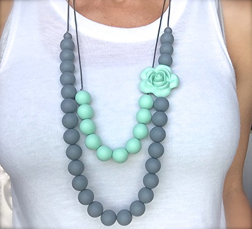 QUALITY: Handmade Multiple Chewing Textures Mint/Gray Teething Necklace for Mom