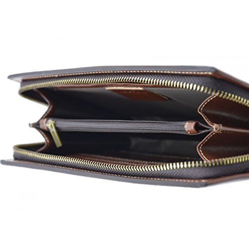 Product Description Genuine Leather Unisex Clutch - Denny Genuine 100% Italian leather clutch. Essential and trendy design, perfect for the man who likes practicality without renouncing elegance. Outside - 100% genuine Italian leather - zip closure - leather band with metal button - leather and metal details Inside - synthetic fabric lining - two separate compartments - central pocket with zip closure - pocket with zip closure - credit card pockets External Dimensions 23 x 3 x 13 cm Weight 0.3 Kg 0