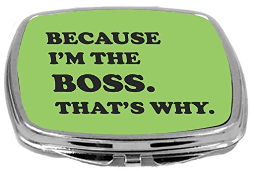 Rikki Knight Compact Mirror, Because I'm The Boss That's Why On Lime Green