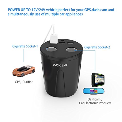 Unique multiple car charger cup design: This product is designed to fit nearly any car or truck's drink cup holder, and can be powered by any standard 12V-24V car cigarette lighter socket.