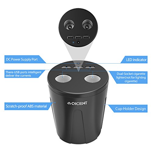Sleek design: QICENT is designed to adapt to your car or truck's cup holder, it can make your car much neater. With this charger, you will stop annoyed by having cords and charger adapters sticking out everywhere. It's appearance use Anti-scratch ABS and high-quality fire proof material. Certified by RoHS, CE & FCC