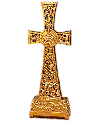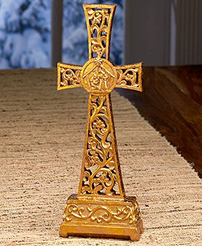 Metallic Gold Resin Stone Filigree Nativity Cross