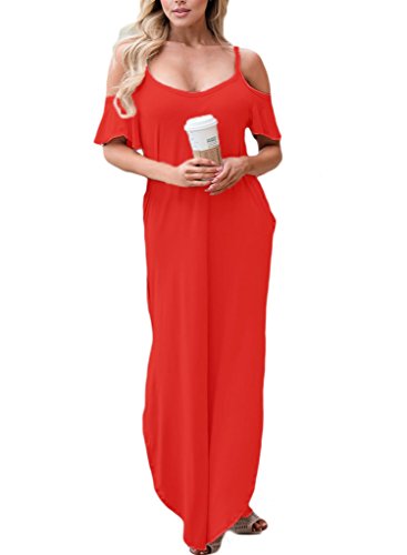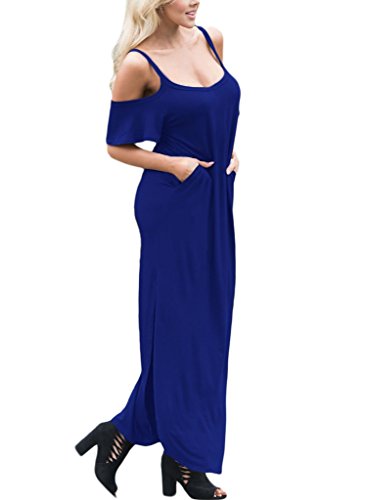 Happy Sailed Women Sexy Deep V Neck Cold Shoulder Jersey Maxi Dress