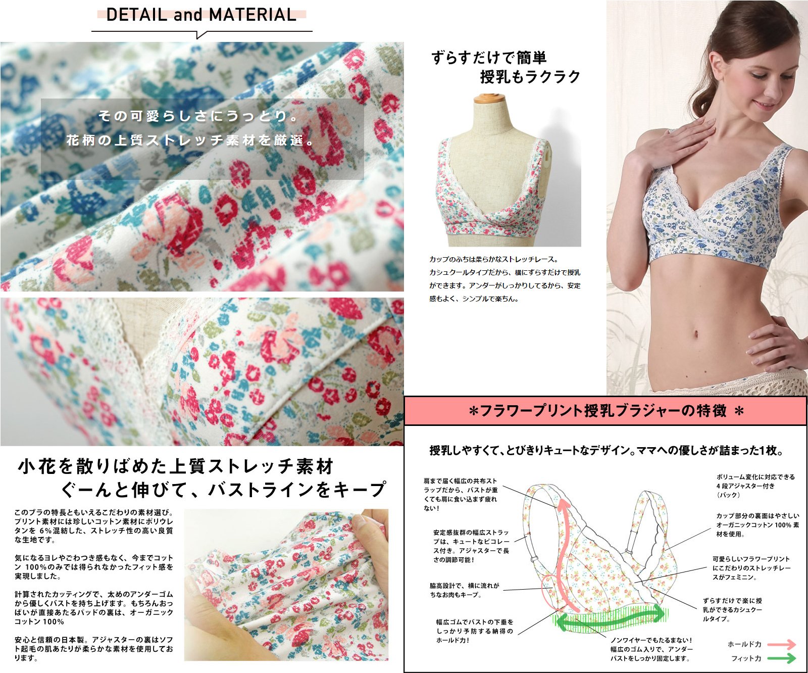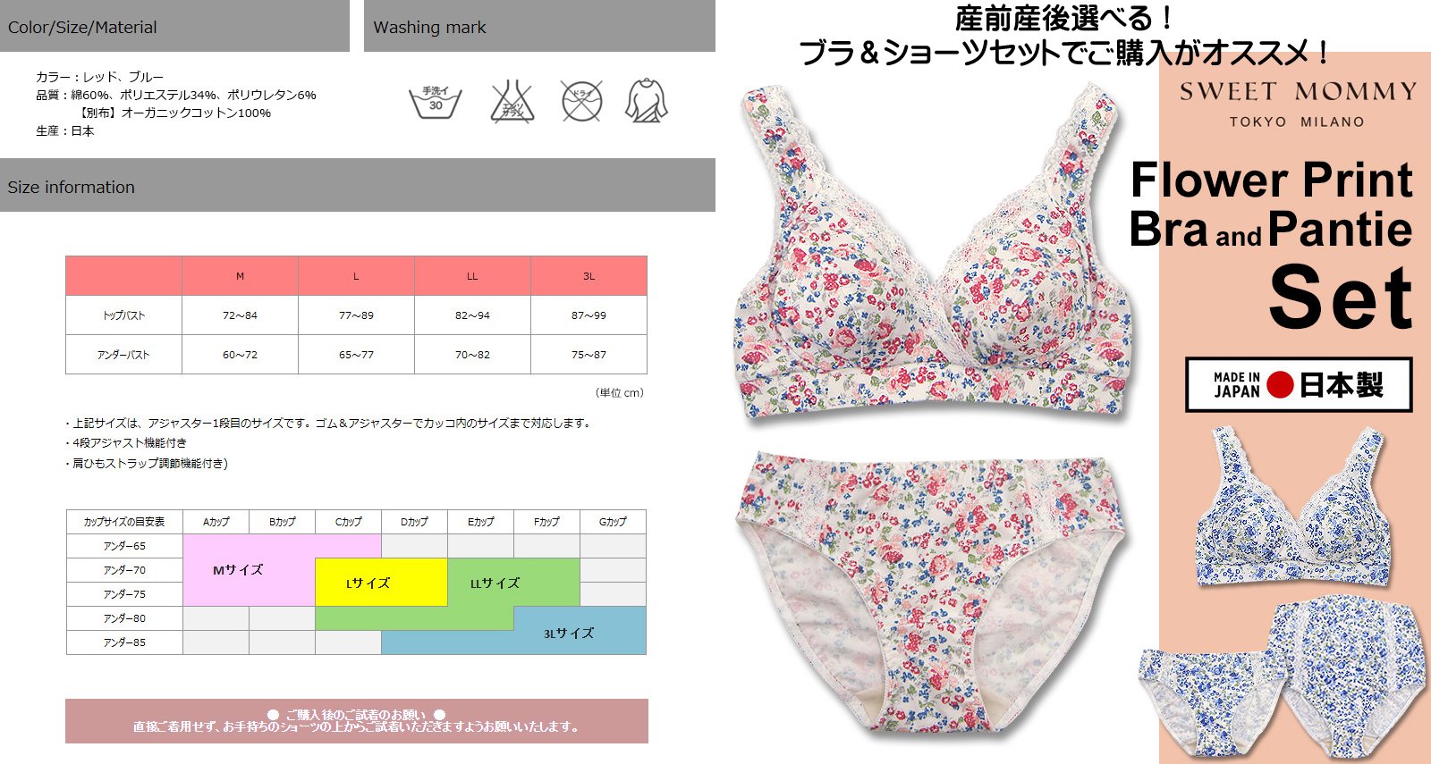 Sweet Mommy (Sweet Mommy) Flower Print nursing bra - Made in Japan LL Blue